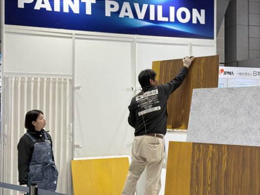 日本塗料工業会の「PAINT PAVILION」ブース=写真=では、日本ペイント、関西ペイント、日本特殊塗料、カシュー、藤倉化成、大塚刷毛製造、好川産業、Showupが出展した。