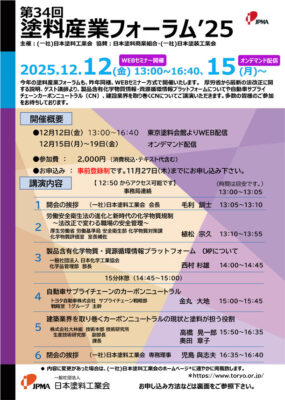 日本塗料工業会(毛利訓士会長)は12月12日、東京塗料会館会場とウェブ配信による第34回塗料産業フォーラムを開催した。