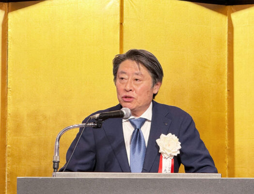 続いて来賓の畑田浩之・経済産業省製造産業局大臣官房審議官が祝辞を述べたあと、小坂伊知郎副会長の発声で乾杯した。