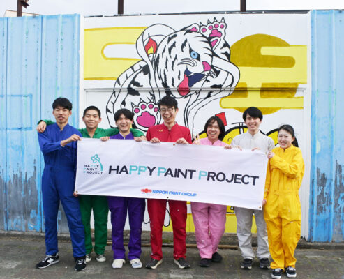 同社では塗料を通じて社会に幸せを届ける「HAPPY PAINT PROJECT」の一環として、7年前から同校グラフィックデザイン系との産学連携教育を続けている。