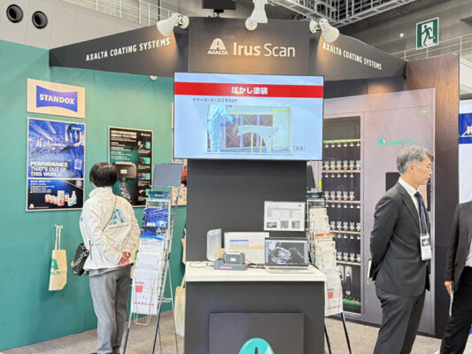 アクサルタコーティングシステムズは、「Axalta Irus Mix」の塗装を実演。展示ブースでは次世代の測色機「Axalta Irus Scan」を展示した。