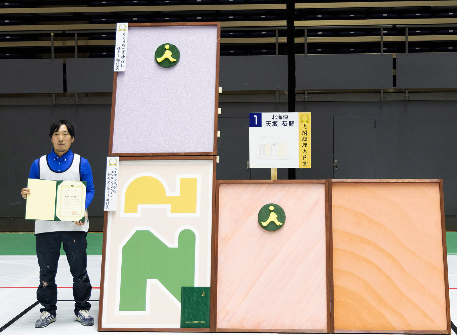 2日間にわたる熱戦の結果、内閣総理大臣賞は天坂恭輔氏(北海道)が受賞、塗装技能日本一の栄冠を射止めた。